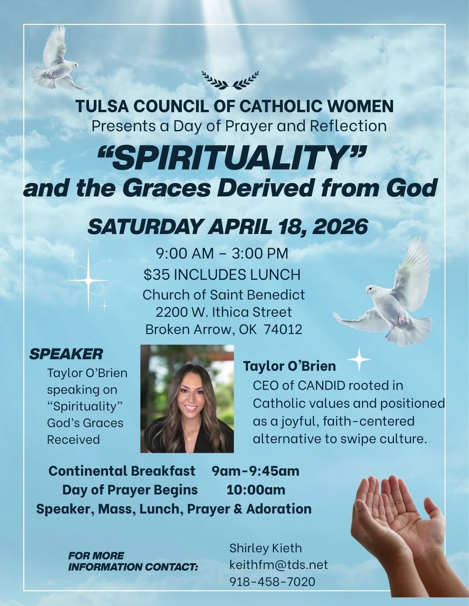 We have promised to offer our prayers for each parish in Oklahoma, naming one parish each day. Our prayers include: